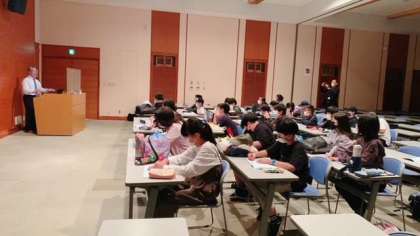 語り部さんから震災のお話を聞いています。『減災』を進めるための方法をたくさん教えていただきました。