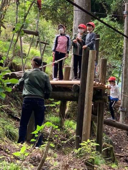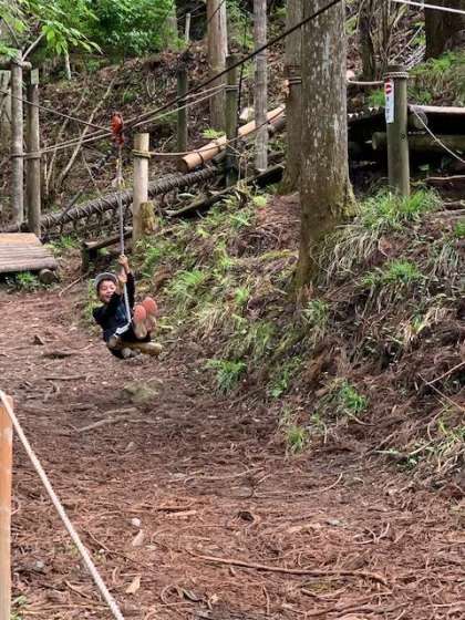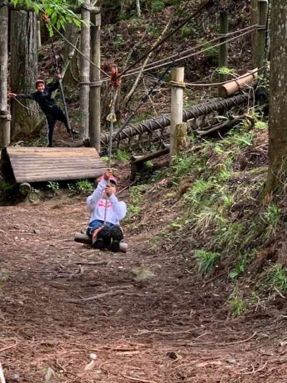 冒険の森を楽しんでいます。様々なアスレチックがあり,時間が足りないぐらいです。