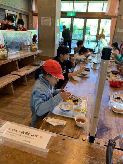 朝のつどいの後は朝食です。昨日の夕食から時間が経っていることもあり,朝食を待ち望んでいました。
