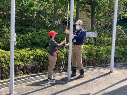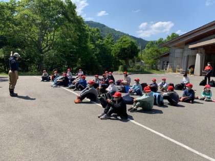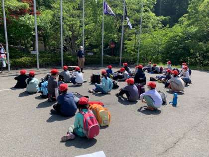 退所式をしています。楽しかった2日間が終わり,学校に帰ります。