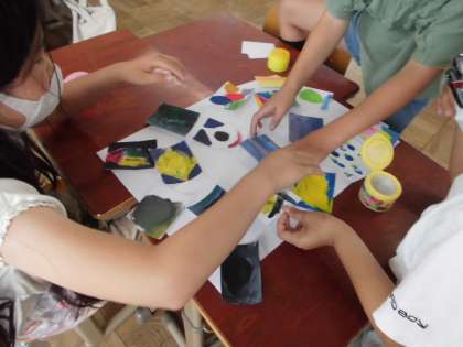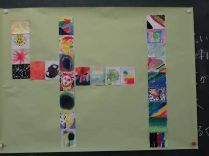 学習の最後にはみんなで「4−1」を作ったり,グループのみんなで並べ方を工夫しながら貼ったりして,素敵な作品をつくりました。