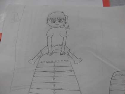 その後,国語科で学んだ「アップとルーズで伝える」の技法を使って,絵を描くための下絵を描きました。