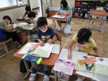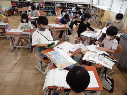 出来事や登場人物がしたこと,言ったことを同じ本を選んだ友だちと,話しながら確認しています。