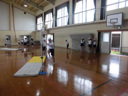 体育科で高跳びの学習をしています。