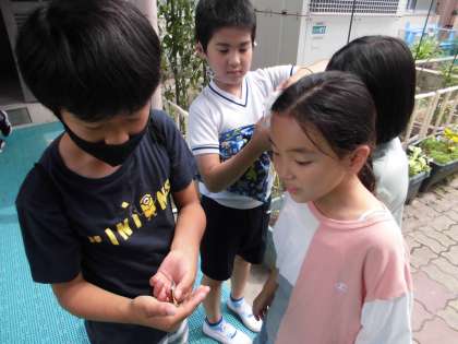 ※教室で育てていた蝶が羽化したしたので体育の後に外に返してあげました。