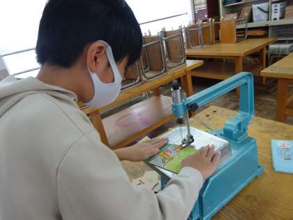 5年生の子どもたちは、図画工作科で糸のこぎりの学習をしています。