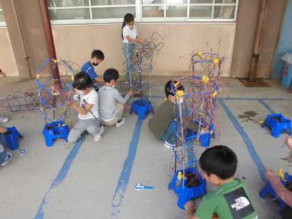 育ててきたアサガオのつるを切って、リースの土台を作りました。絡みつくつるをほどくのは一苦労でした。頑張って輪っかにして、形を整えて、感想させています。クリスマスが近づくころに、飾りつけをしようと思います。楽しみです。♪