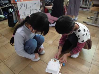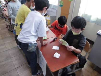 生活科「あそんでためしてくふうして」の単元で、1年生を招待するおもちゃランドを企画しているのですが、今日は「2年生だけのおもちゃランド」をしました。