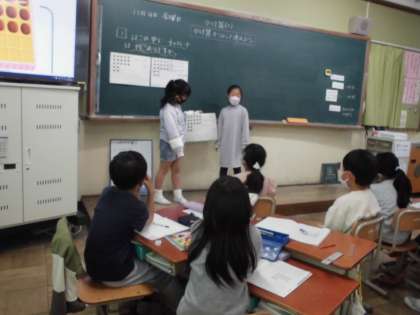 一つの問題を解く方法・式が何通りも出てきて、子どもたちは大盛り上がりでした。「へぇ〜そんな方法あるの!?」「すごい!」「なるほど〜」とっても反応が良く、発表している子どもたちも嬉しそうでした。