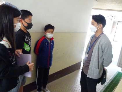 5年生は外国語科で「できること」や「できないこと」を英語で表現する学習をしています。今回は学習の最後に「先生クイズ」をする予定です。子どもたちはクイズを作るために、学校で働く先生たちの「できること」や「できないこと」をインタビューしています。