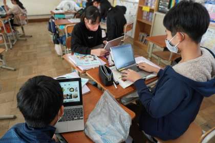 Unit6では、街にあるものやできることなど、自分たちの街を紹介することをゴールに学習をしています。ALTのジョシュア先生に紹介をするために、何を紹介しようかグループで考えて、パンフレットを作成しました。ジョシュア先生に京都の良さをたくさん知ってもらえるといいですね。