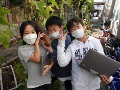 今日は、春・夏から続けて観察している植物・動物を見つけに行き観察を行いました。