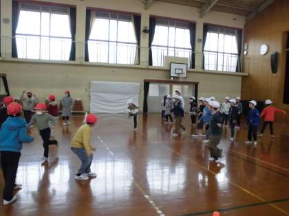 今日の中間休みにドッジボール交流会がありました。1・2年生合同で赤と白に分かれて、みんなで楽しくドッジボールをすることができました。