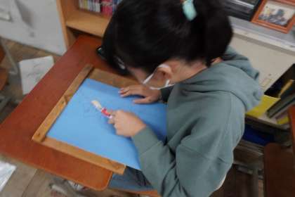 社会科で浮世絵は、絵師・彫師・摺師で分業しているということを学習しましたが、図画工作科ではすべてを担当します。当然プロフェッショナルではありませんので、自分のもてる力の中で精一杯に表現してほしいと思います。