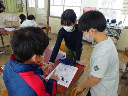 グループみんなで担任からのお題に取り組みながら、冬休みの思い出や3学期の抱負などを話すことができました。