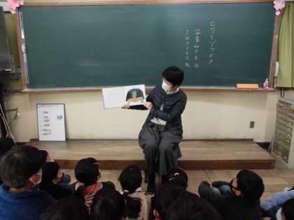 今週も図書ボランティアの方に、朝の読み聞かせに来ていただきました。『ヒワとゾウガメ』という本でした。