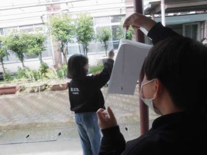冬と春のちがい、太陽と気温の関係について話し合いました。天気のちがう日に気温をはかり、天気と気温の関係について調べる活動をしています。