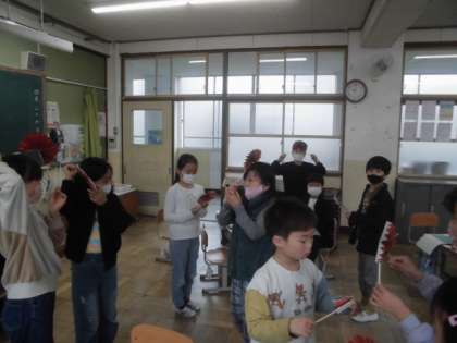 折り紙とわりばしを使って扇を作りました。扇がつくる部分を「角」ということを、体験的に学ぶことができました。これから、その大きさについて学んでいきます。