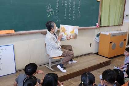 今日は朝の学習で、図書ボランティアの方に読み聞かせをしていただきました。「がちょうのたんじょうび」というお話でした。