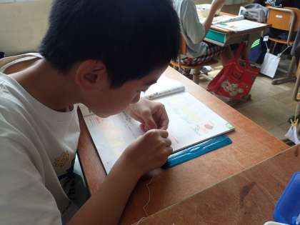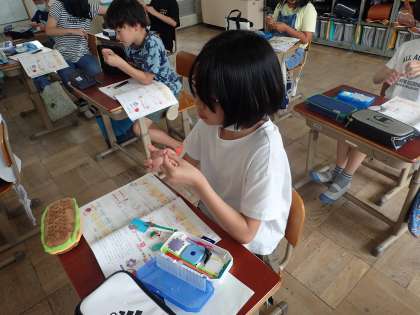 今日と明日は家に裁縫セットを持ち帰っていますので、家で玉結びの練習をしてみましょう。レッツ、トライ!