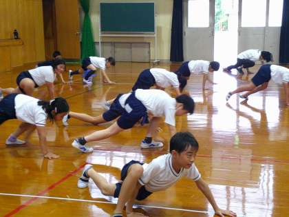 他にも柔軟性や体幹を鍛える練習もしました。トカゲがいっぱい歩いているようでした。