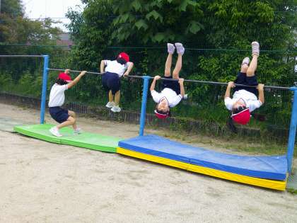 鉄棒遊びをしたり、遊具遊びが始まったり、できることが増えていきます。