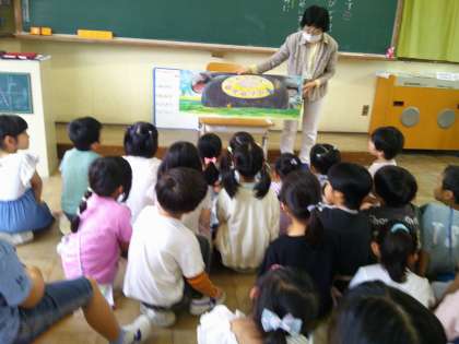 朝の学習で、図書ボランティアの方に読み聞かせに来ていただきました。