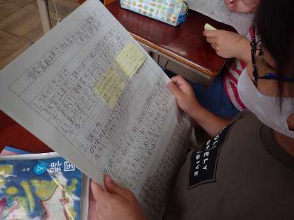 今日はまとめたものを、友だちと読み合いをしました。