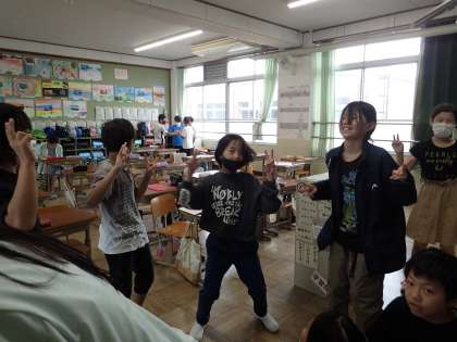 5年生は、休み時間に山の家で歌う歌や、ダンスの練習をしていました。