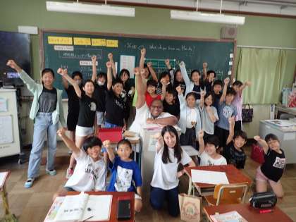 ジョシュア先生に喜んでもらえて、ニコニコ笑顔な5年生でした。