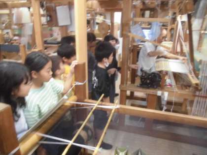 総合的な学習「人にやさしい町」の学習で、校区内の西陣工房さんに見学に行かせていただきました。知的障害者の方々が伝統工芸の仕事をされている姿を見て、大きな発見があったようです。