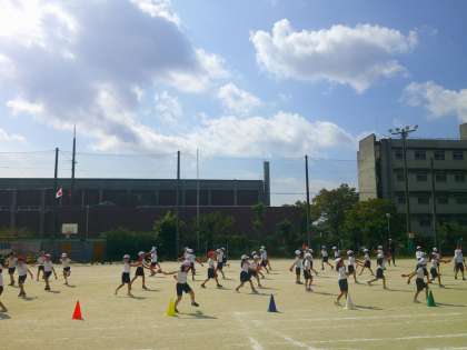 今日の体育は運動場でソーランを踊りました。