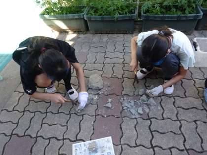 6年生は理科「土地のつくりと変化」の学習で、化石の発掘体験をしました。子どもたちは、化石の一覧を見ながら一生懸命に化石を探す姿が見られました。
