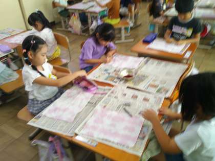 子どもたちは、紙を染めて、好きな模様ができて喜んでいました。