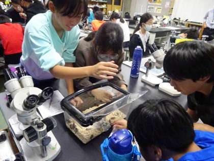 今回は、「なき虫のヒミツ」という授業を受けました。「なき虫」と言われる昆虫は、どうやって鳴いているのか、どんな風に鳴いているのかなど、たくさんのヒミツを知りました。