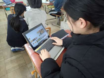 今日は,下絵を描きました。タブレットを使って,花を調べている児童もいました。