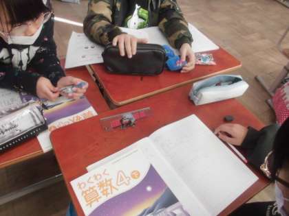 1より小さい数だけではなく、1より大きい数も分数で表せることを学びました。視覚的にとらえることで、自分の考えをもつことができました。また、友達に自分の考えを伝える活動をすることで、学びが深まっていました。