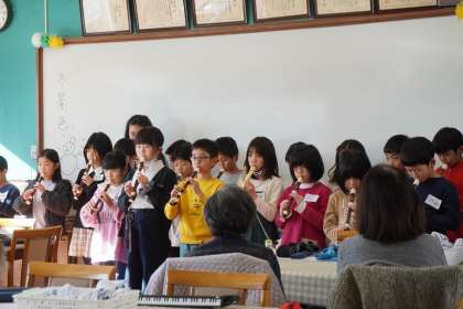 子どもたちはグループごとにオリジナル福笑いを作成し、みんなで楽しめるように工夫をして準備をしました。すこやか学級の方々の楽しんでおられる様子を見て、やってよかったと満足していました。