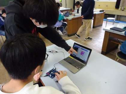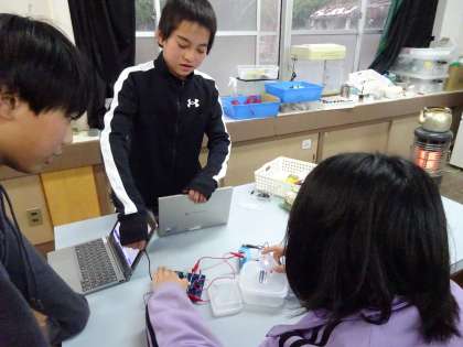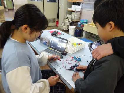 6年生は理科「私たちの生活と電気」の学習でプログラミングに挑戦しています。