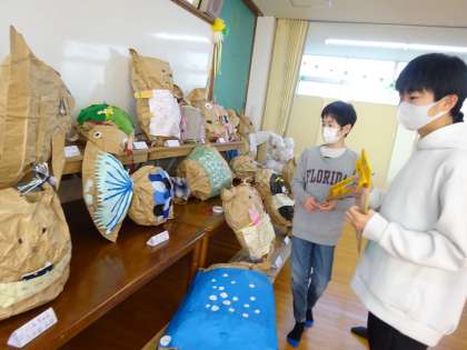 各学年の作品を楽しそうな表情で鑑賞する姿が見られました。「懐かしいな。」と6年間の自分の学校生活も振り返りながら楽しむことができたようです。