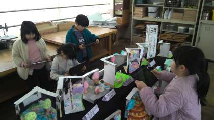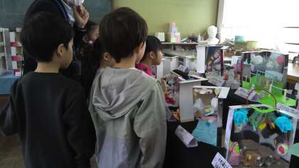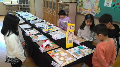 今日の2時間目は、作品展を見に行きました。「友だちの作品の『いいね』を見つけよう!」をめあてに、鑑賞をしました。