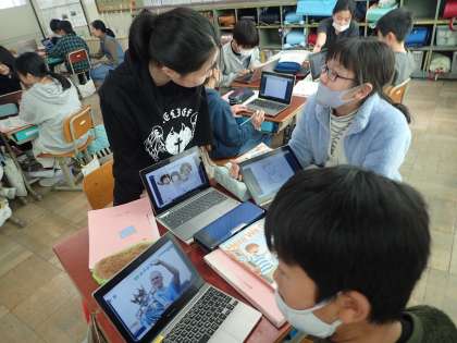 手元資料としてタブレットで絵を描いたり、写真を見せたりして友達に紹介していました。