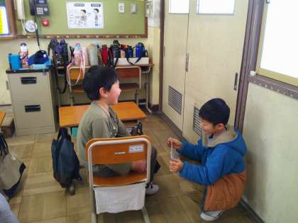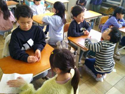 今日は1年生の生活科「もうすぐみんな2年生」の学習で、2年生教室訪問に行きました。