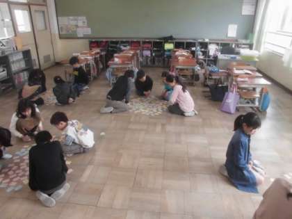 五色百人一首を使って、競い合って親しみました。グループや一対一で、白熱した勝負ができました。