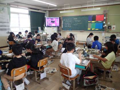 図画工作科で「墨と水から広がる世界」の学習をしました。