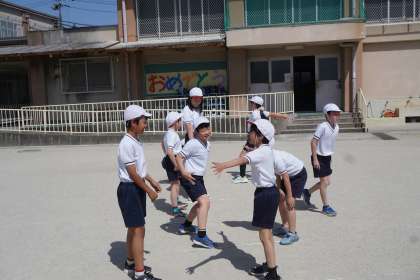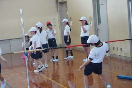 体と心をほぐすことをねらいに学習を進めています。今回は「じゃんけんすごろく」をして楽しみました。サーキット形式で様々な運動に触れ、じゃんけんに勝つと一つ先の場所へと行くことができ、負けるともう一度同じ運動を行います。勝っても負けても笑顔で楽しく運動することを楽しむことができました。