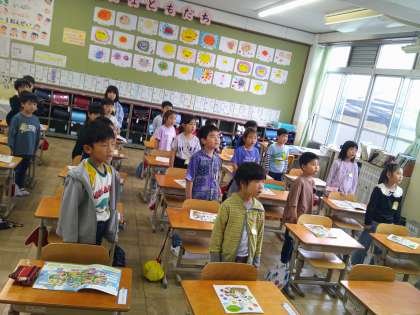 今日の音楽の授業では、初めて校歌を歌いました。よく聴いて元気よく歌えていました。「もう覚えた!」「また歌いたい!」と声が聞こえていました。