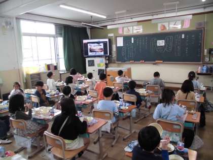 給食は、「さんまのしょうがに」でした。