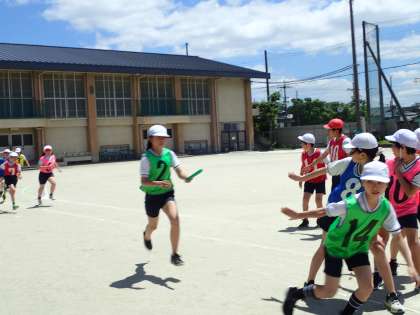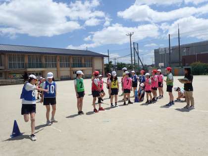 ねらい1では、バトンを受け取る姿勢やバトンゾーン、声掛け無しのリレーを行いました。その活動をすることにより、バトンパスの重要性を改めて気づいた子ども達は、その後のグループ練習では、徹底的にバトンパス練習をしていました。