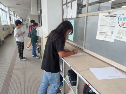 子ども達は、立候補者の演説内容を真剣に読み、投票用紙に立候補者の名前を書いていました。